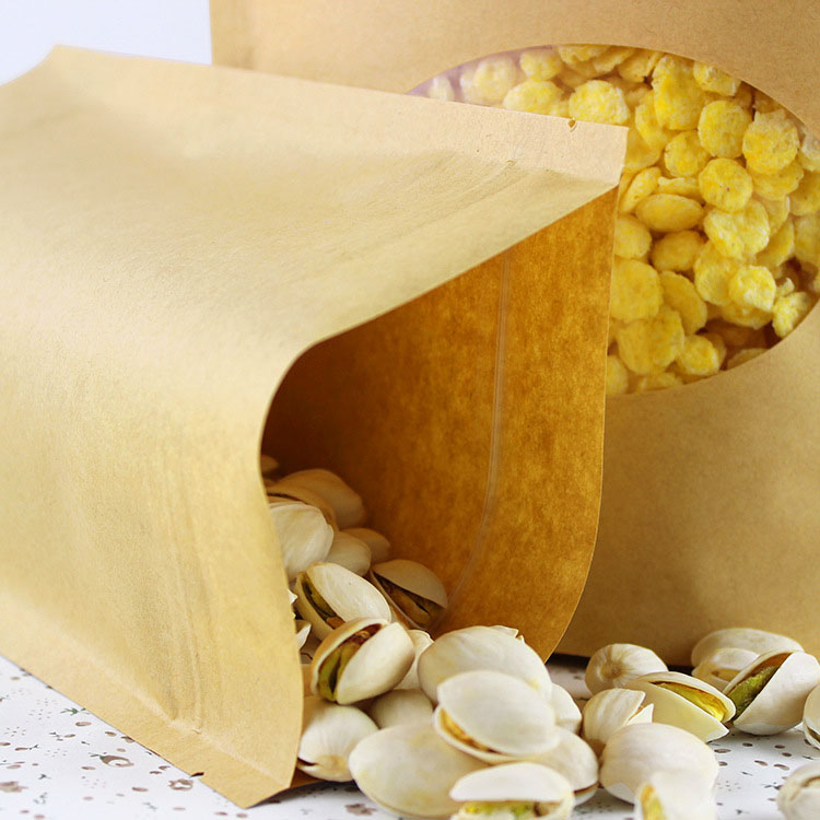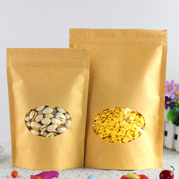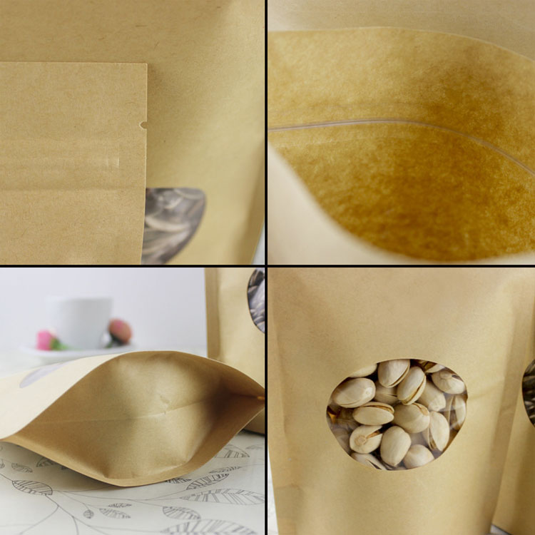 | Brown stand up pouch with oval window Thickness:140micron Material:kraft paper/pet/cpp MOQ:100pcs | 11*16+3cm | 0.037 |