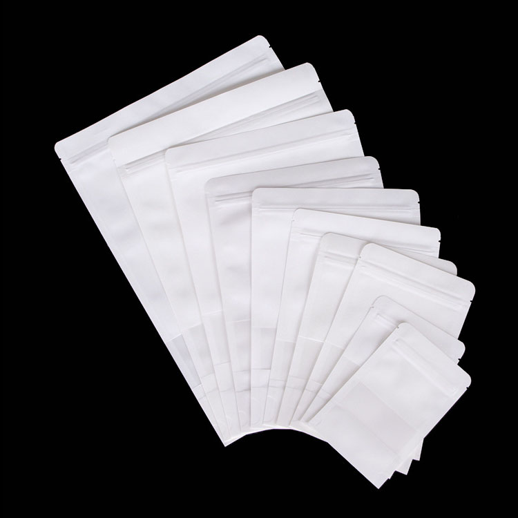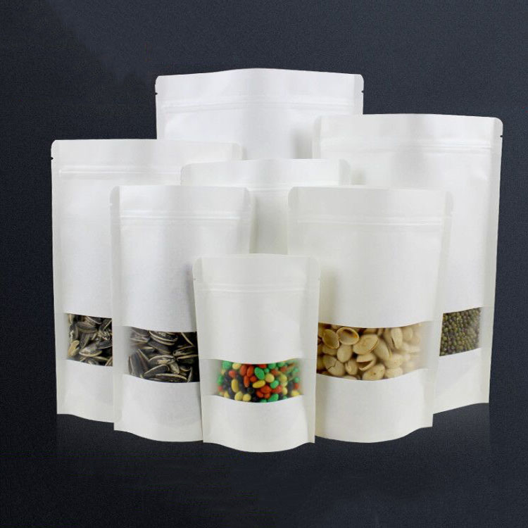 | White stand up pouch with frosted window Thickness:140micron Material:MBopp/kraft paper/cpp MOQ:100PCS | 9*14+3cm | 0.017 |