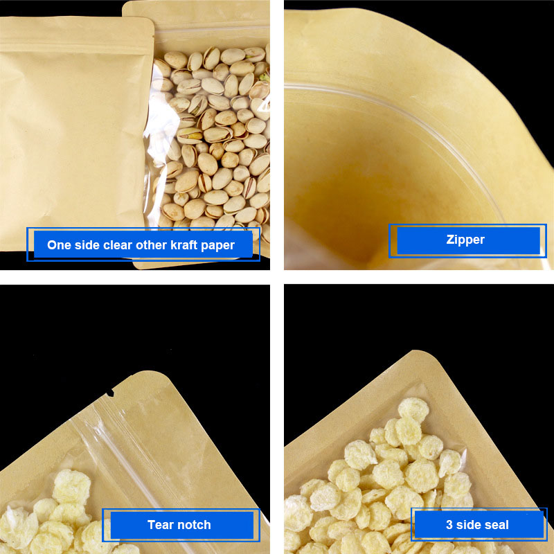 | flat pouch one side clear Thickness:110micron Material:Kraftpaper/pet/cpp pet/cpp(clear) MOQ:100PCS | 9*14cm | 0.019 |