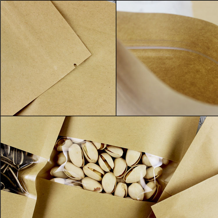 | flat pouch with window Thickness:140micron Material:Kraft paper/pet/cpp MOQ:100PCS | 9*14cm | 0.015 |