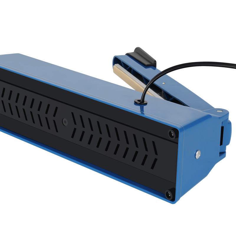 Place poly bag between seal bars, press down gently and release. Also seals polypropylene and foam.